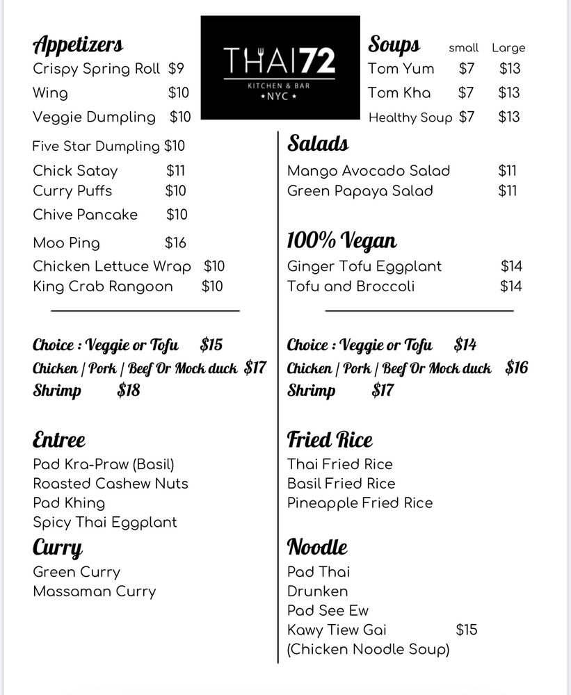 Welcome to Thai 72, a delightful cocktail bar nestled at 128 W 72nd St, New York, NY. This charming spot seamlessly marries an elegant ambiance with a vibrant menu that showcases authentic Thai flavors.