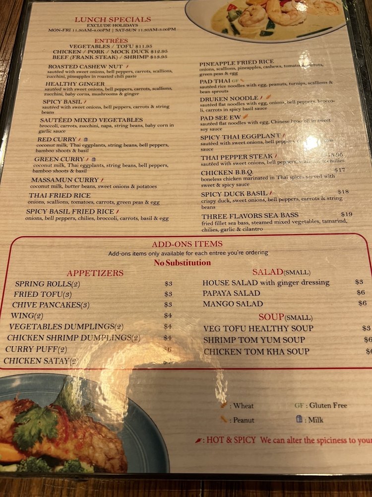 Start your culinary journey with appetizers like the Fried Calamari or the indulgent King Crab Rangoon, both highly praised by patrons. For the main courses, their Shrimp Pad Thai and Spicy Duck Basil highlight the restaurant's commitment to bold flavors and generous portions.